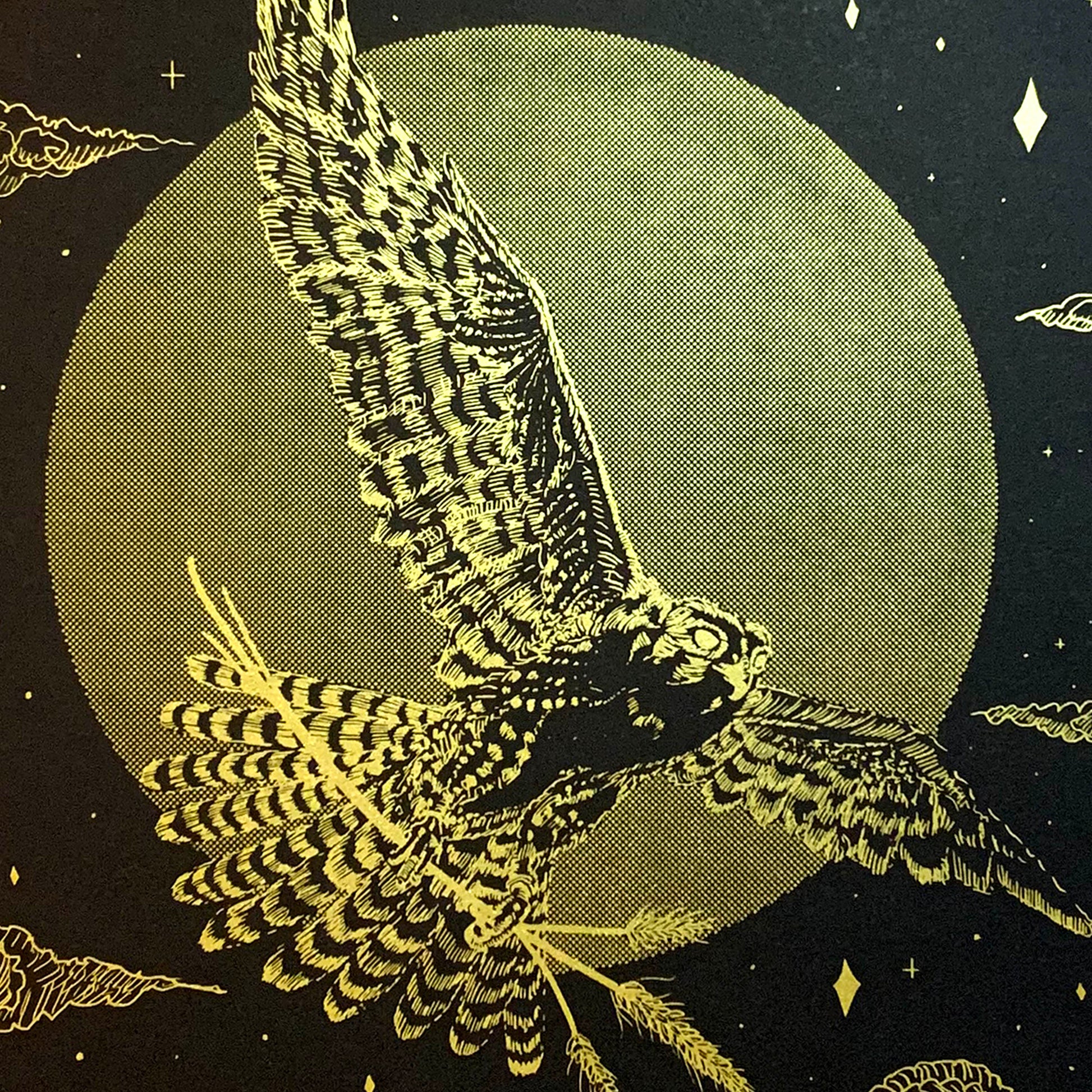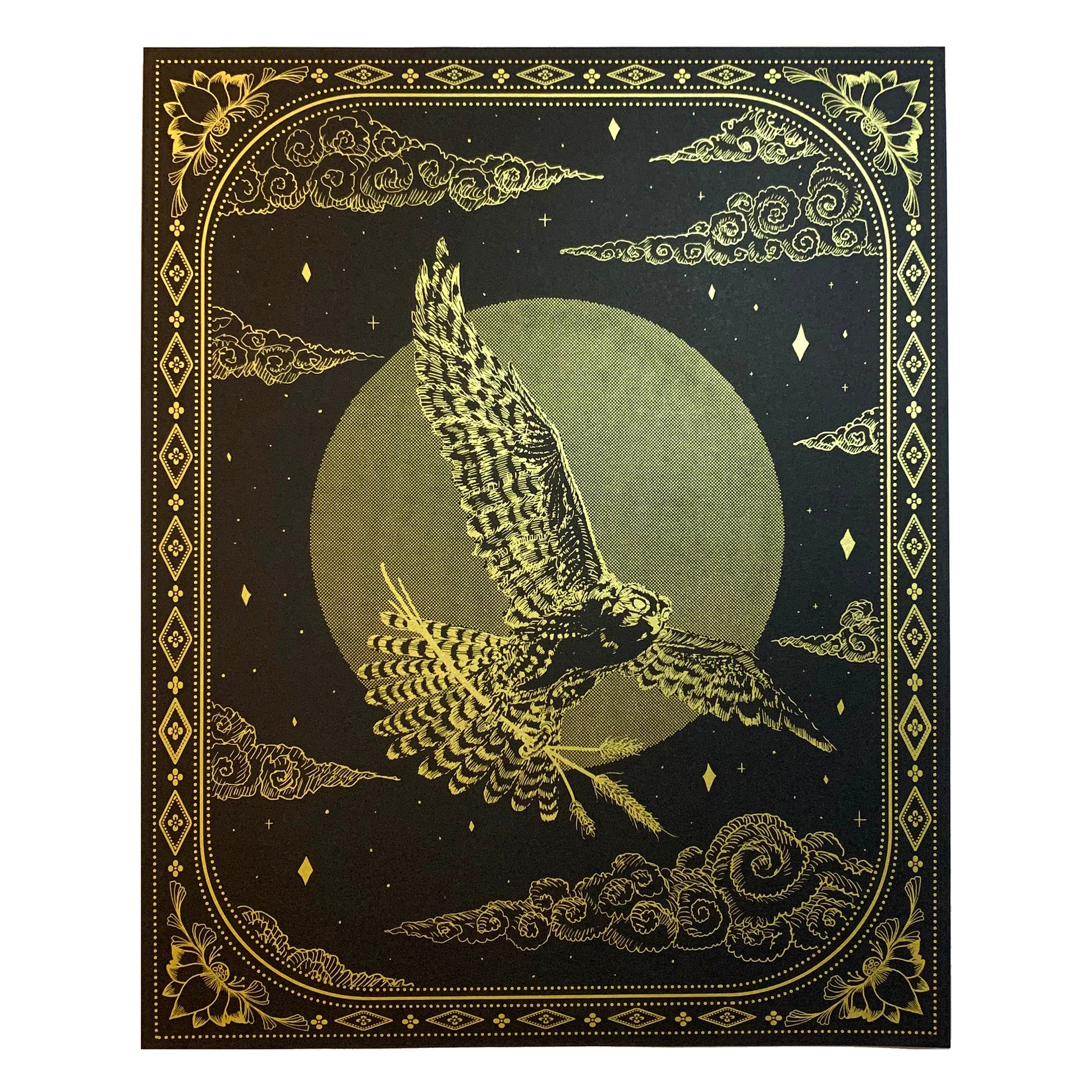 16"x20" screen printed poster, metallic gold ink on black 100# cover weight.