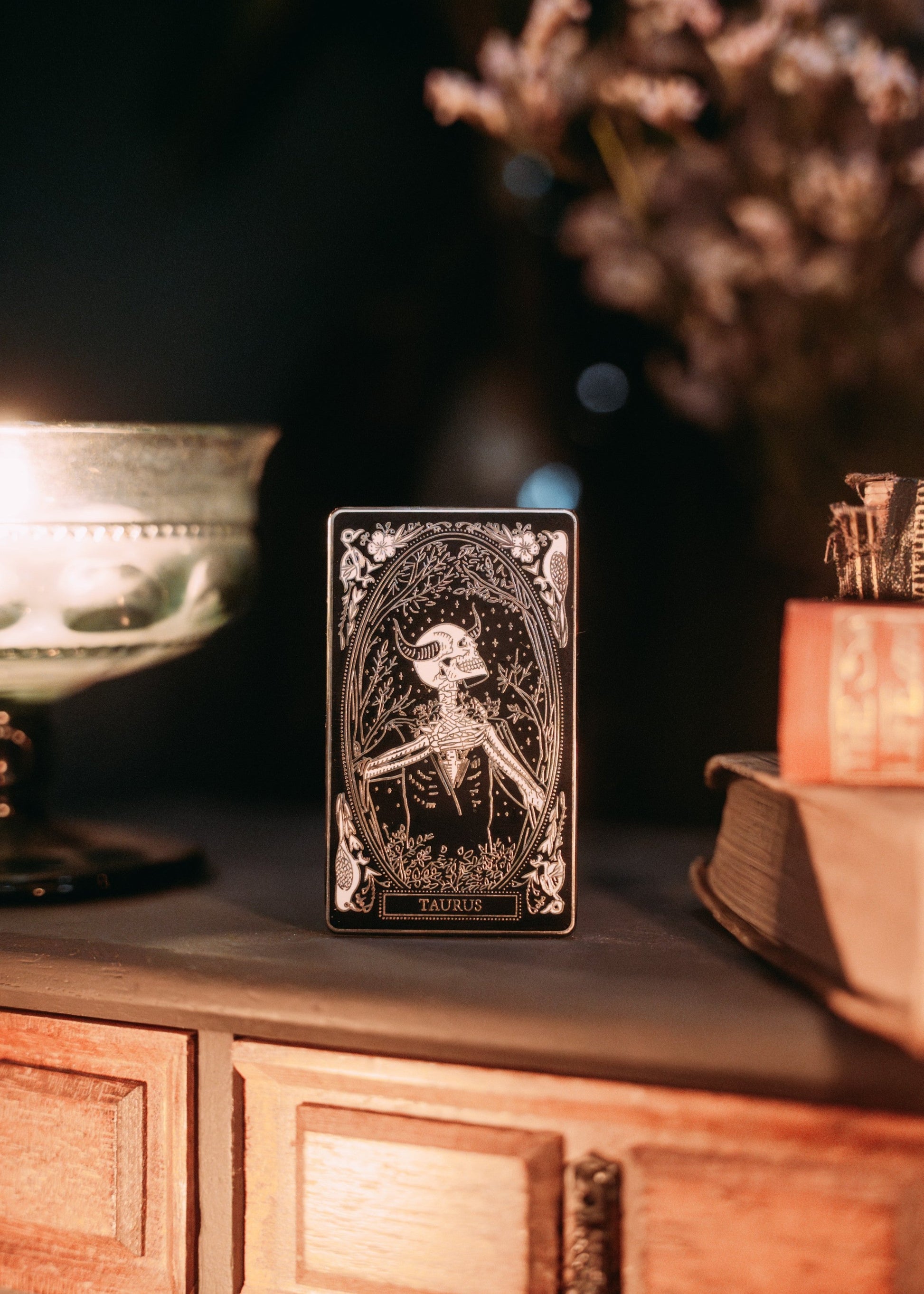 Embody the steadfast, grounded energy of Taurus with our striking hard enamel pin, featuring the Taurus oracle card from The Mirror Oracle deck. Representing stability, resilience, and sensuality, this pin honors Taurus’ connection to the material world and its patient, enduring nature.