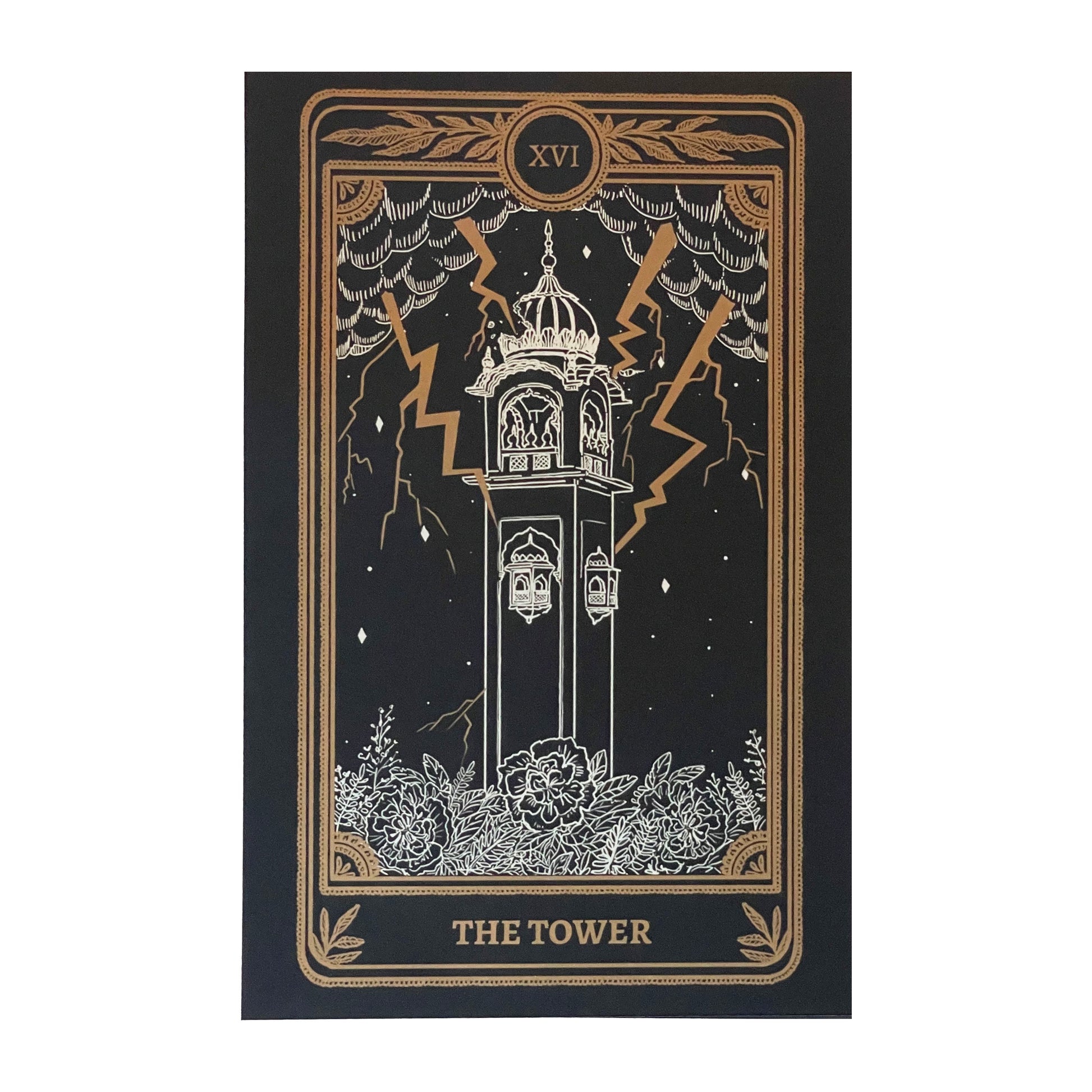 An 11" x 17" art print featuring The Tower from The Marigold Tarot — a symbol of collapse, clarity, and necessary upheaval. Stark and resonant, it speaks to what must fall before transformation can begin.