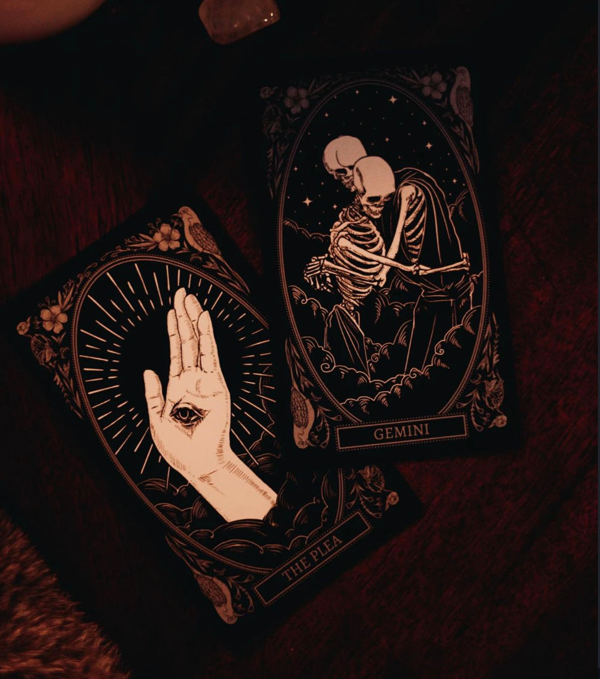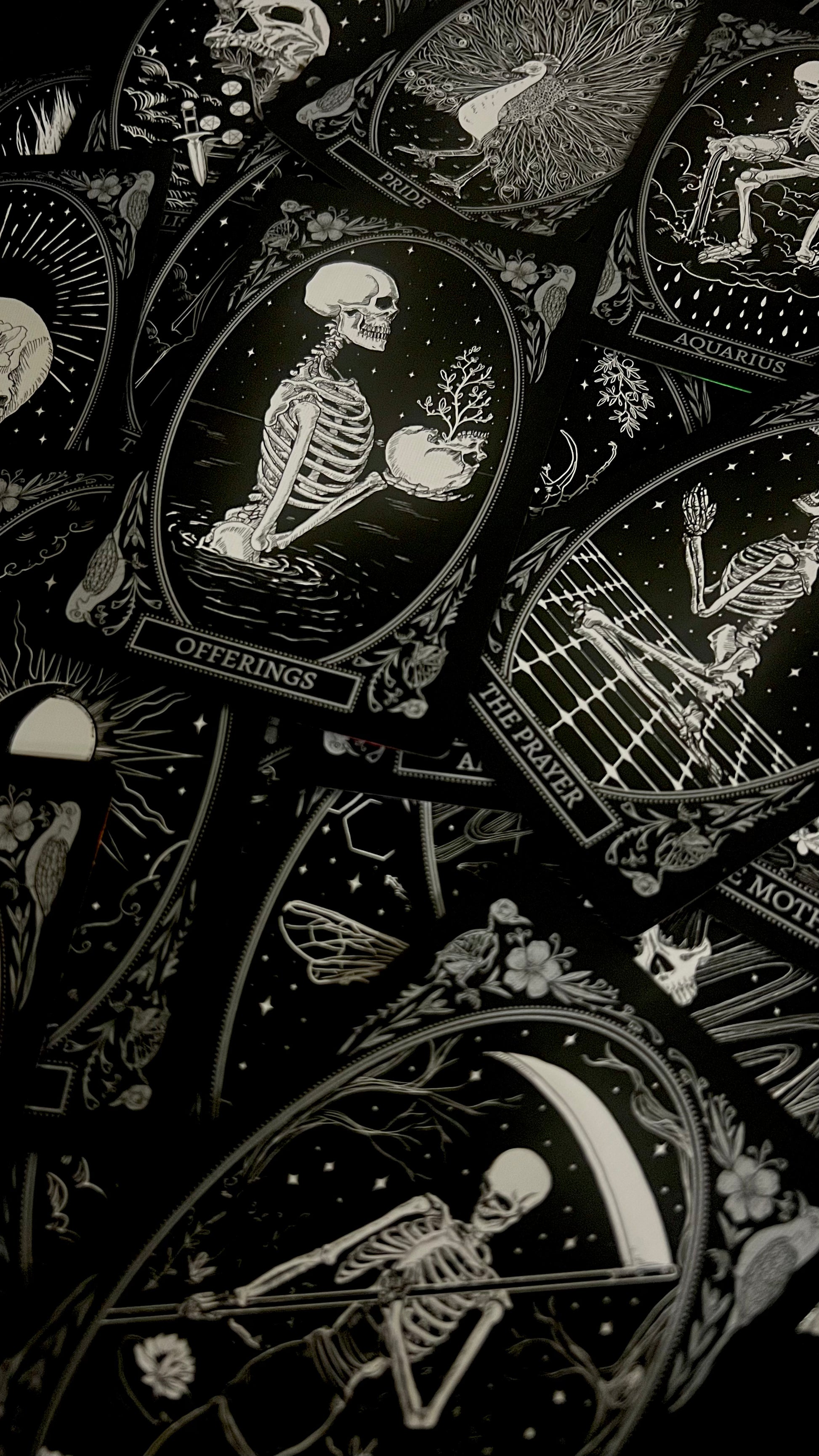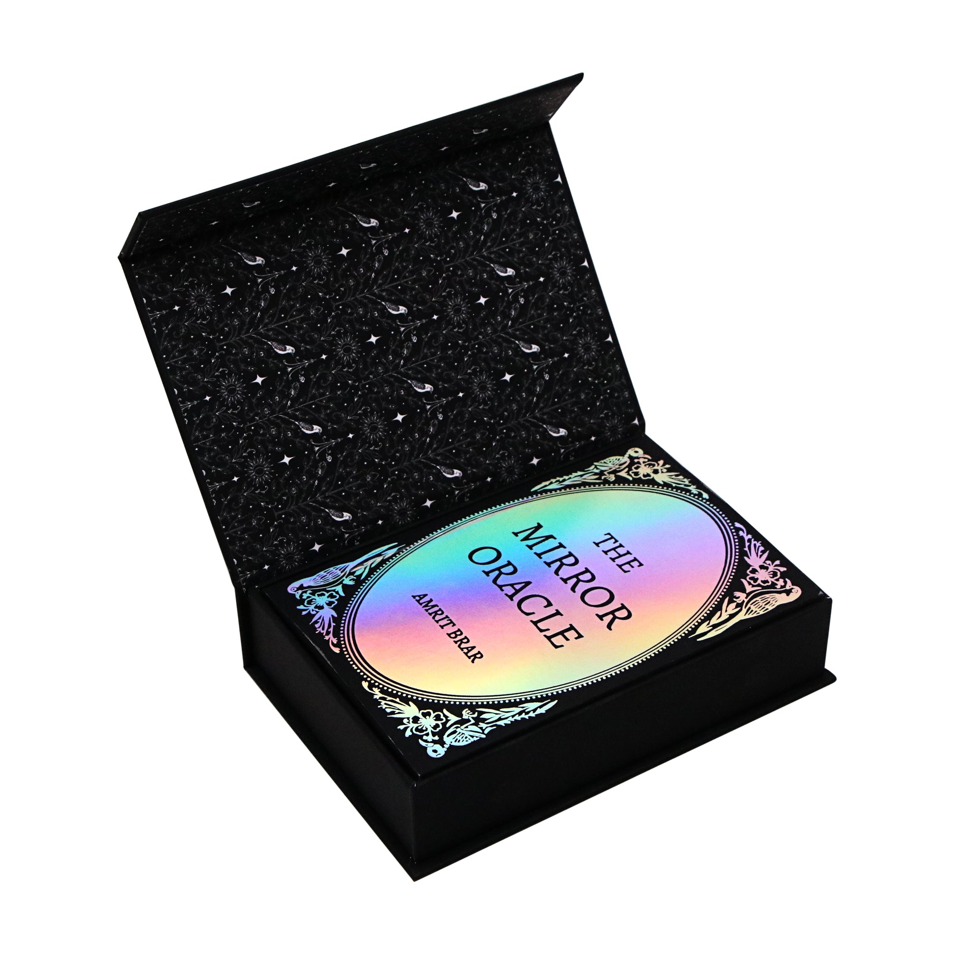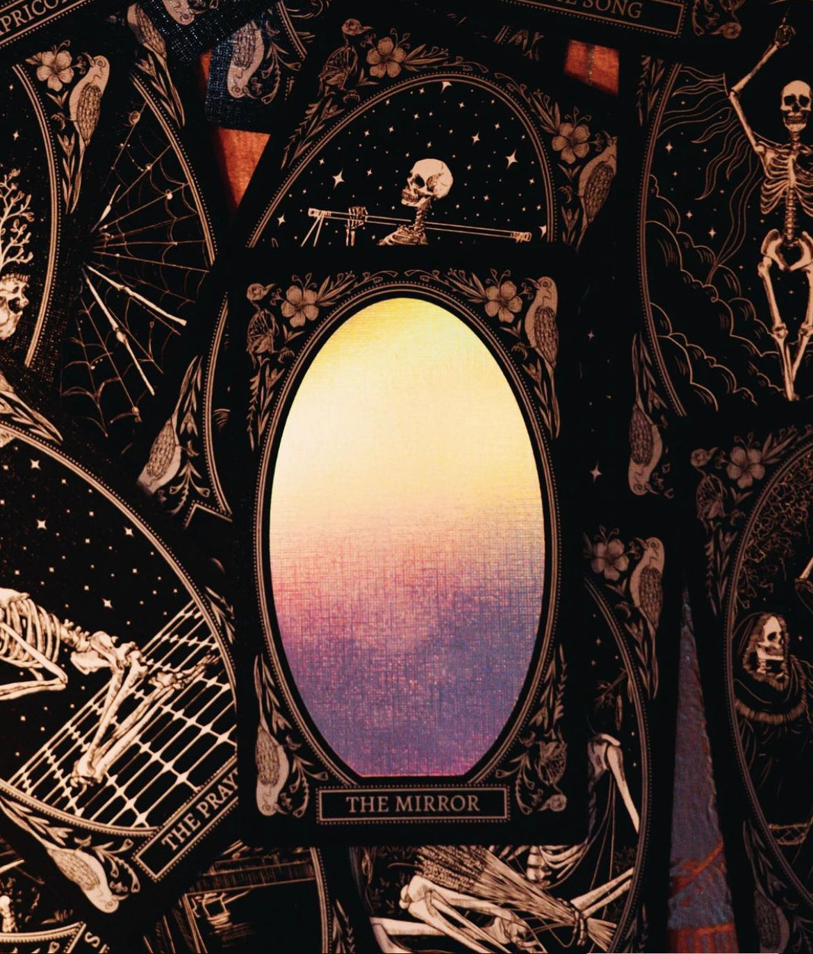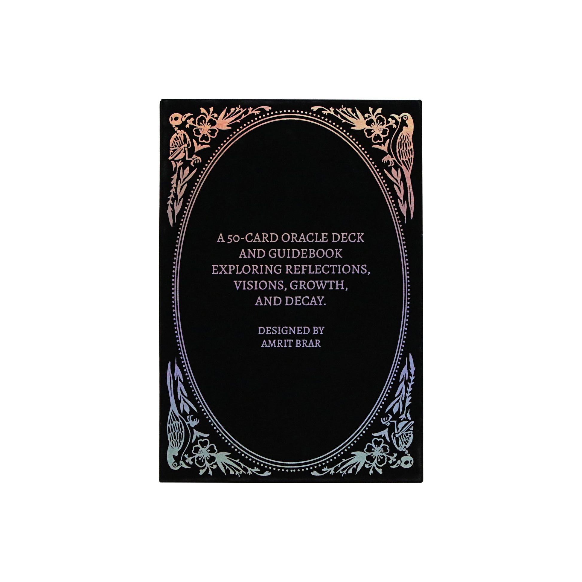The Mirror Oracle is a descent into the quiet, unlit corners of the self—a 50-card deck that speaks in symbols of decay, transformation, and the blurred edge between vision and reality. Conceived as a companion to The Marigold Tarot, this oracle invites you to step beyond divination as comfort and into the raw, necessary work of self-confrontation.